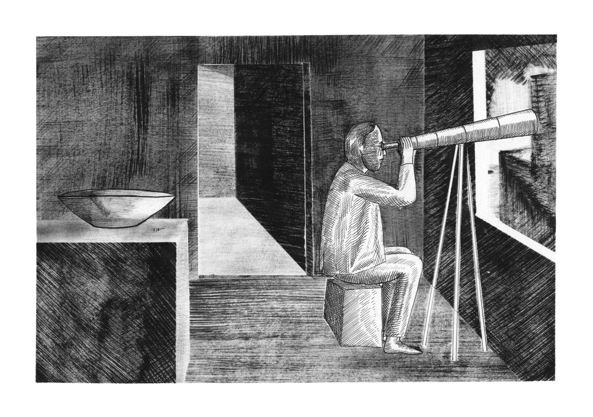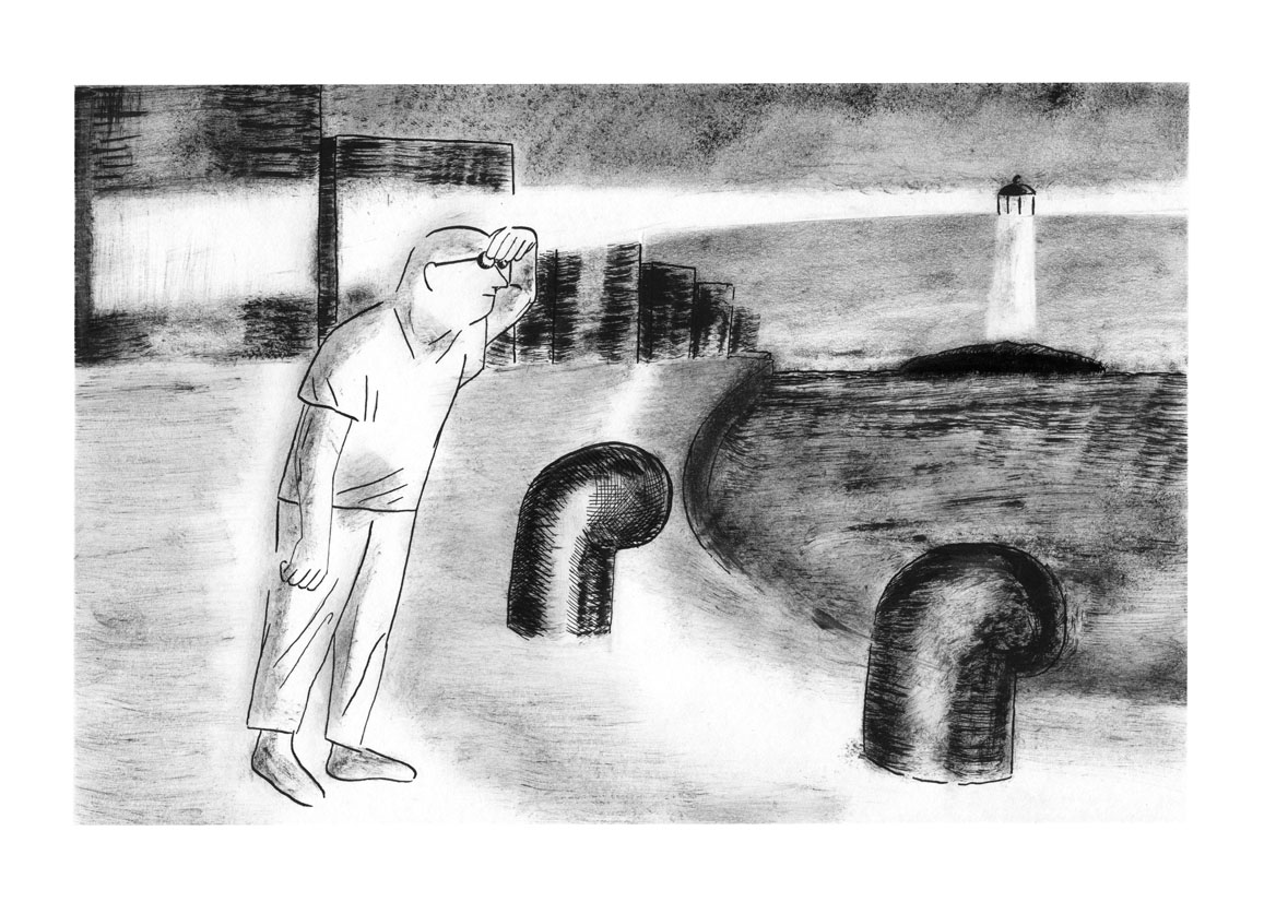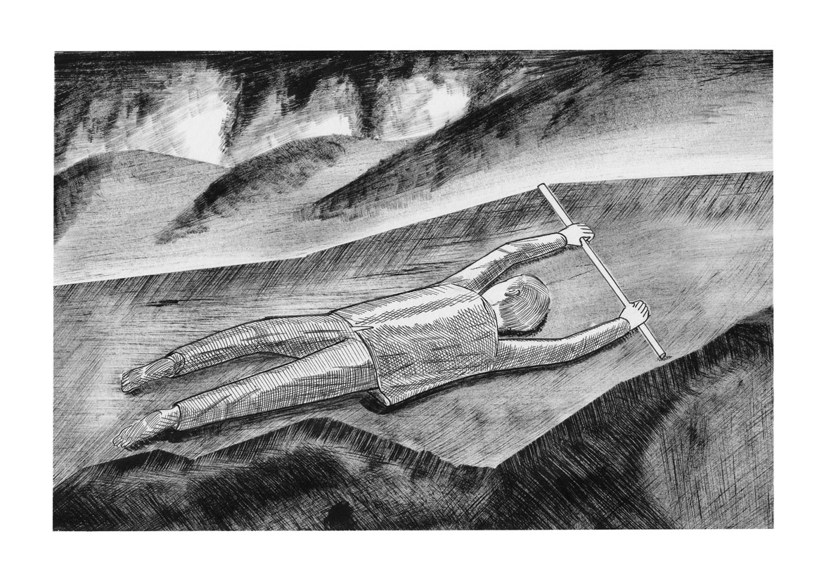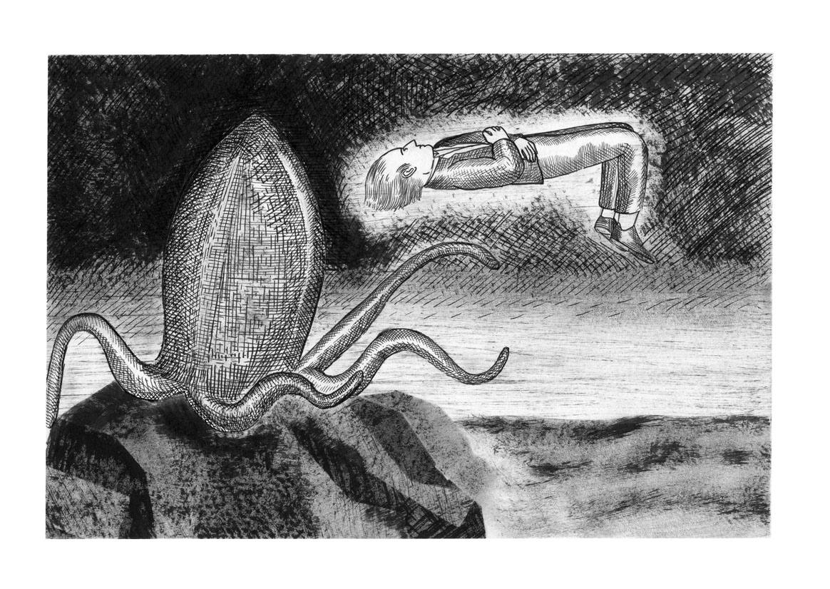 Le sommeil du nageur est un cycle de dessin représentant d’étranges évenements simultanés. Livre auto-édité en deux exemplaires à l’occasion de mon diplôme d’illustration à la HEAR en 2013.