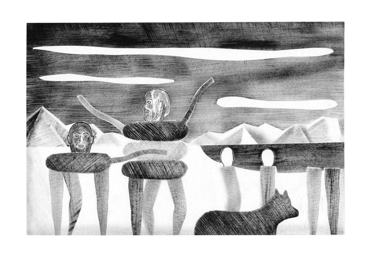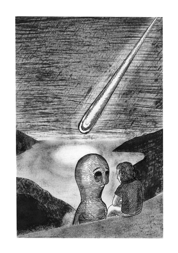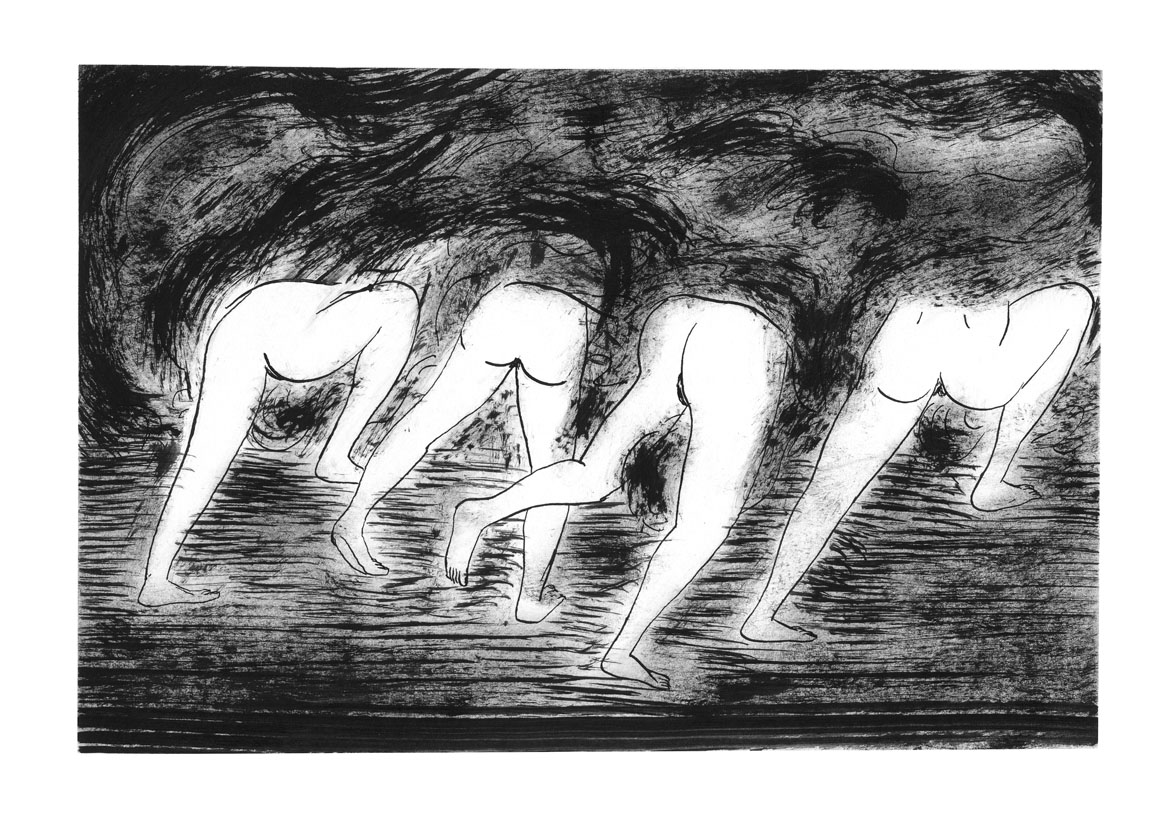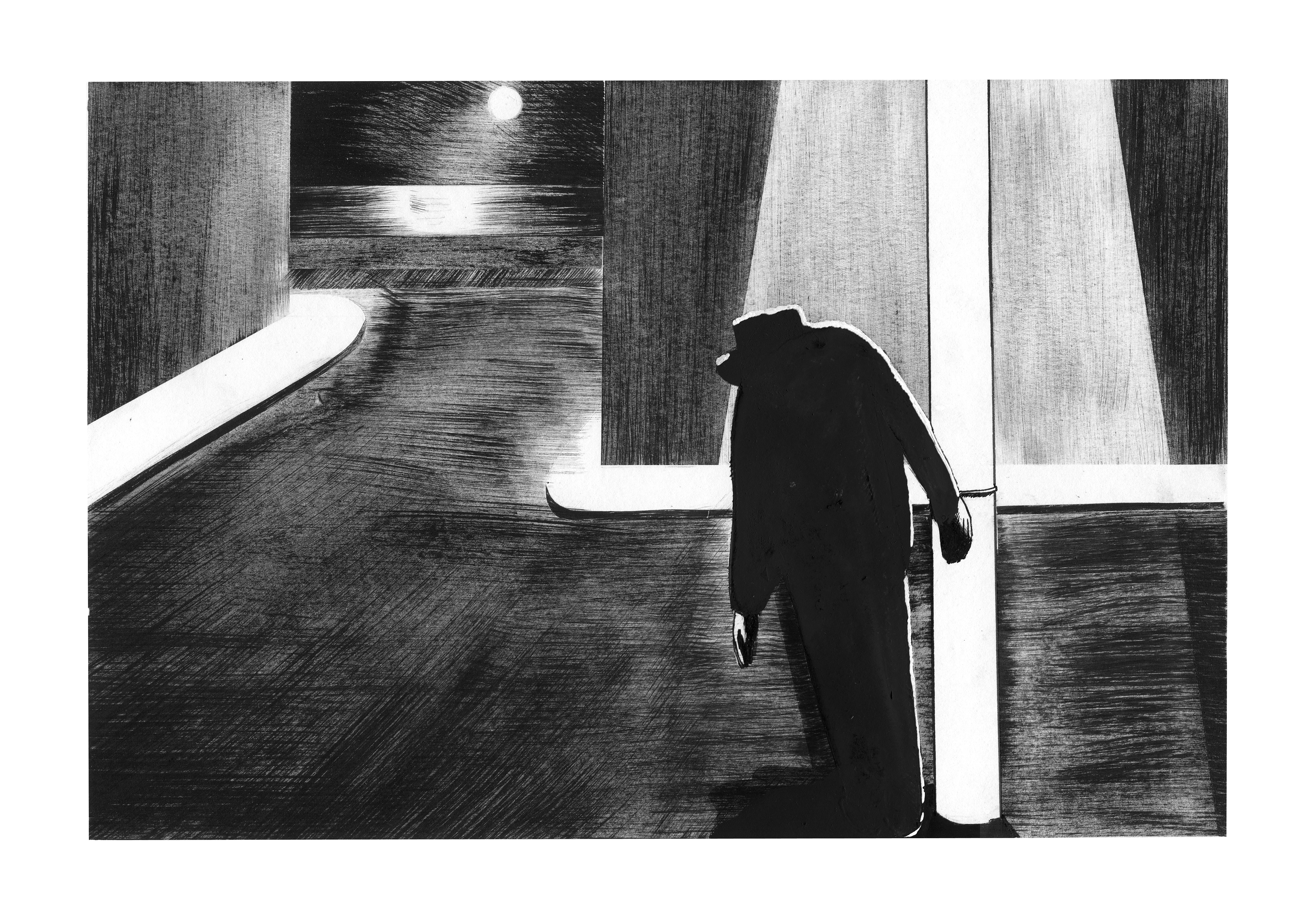 Le sommeil du nageur est un cycle de dessin représentant d’étranges évenements simultanés. Livre auto-édité en deux exemplaires à l’occasion de mon diplôme d’illustration à la HEAR en 2013.